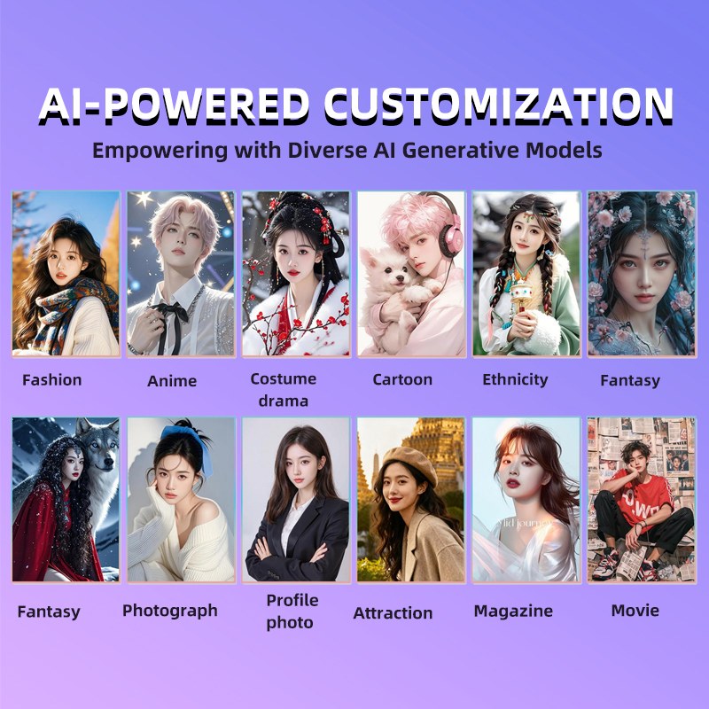 Photography Categories:Various style AI-generated portrait/artistic photos (customizable templates)