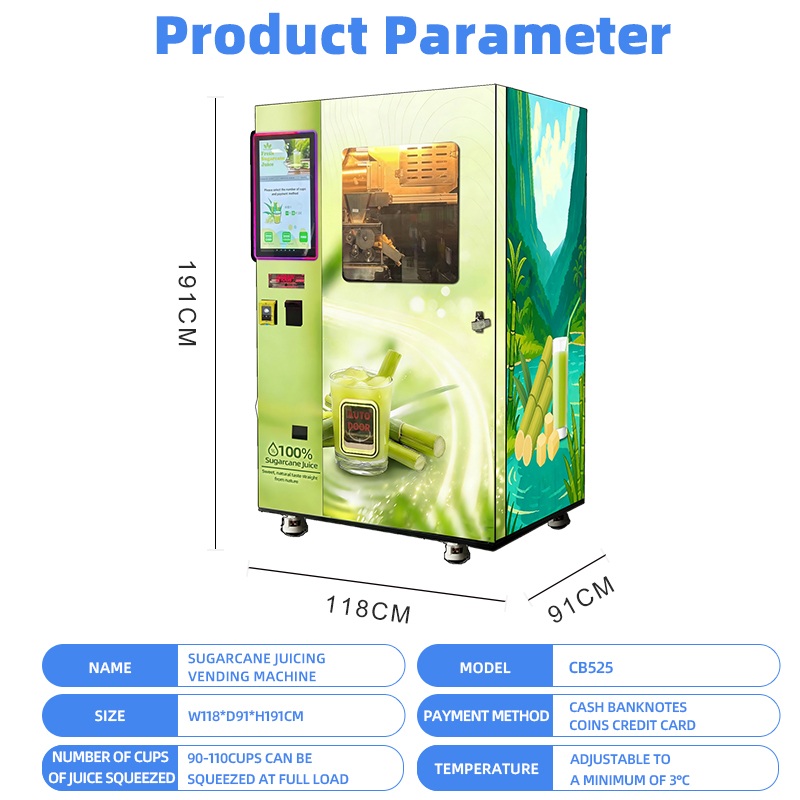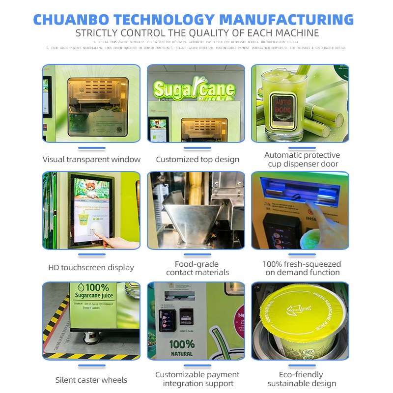The fully automatic cane juice vending machine of Guangzhou Chuanbo Information Technology Co., Ltd. is available for order at any quantity.